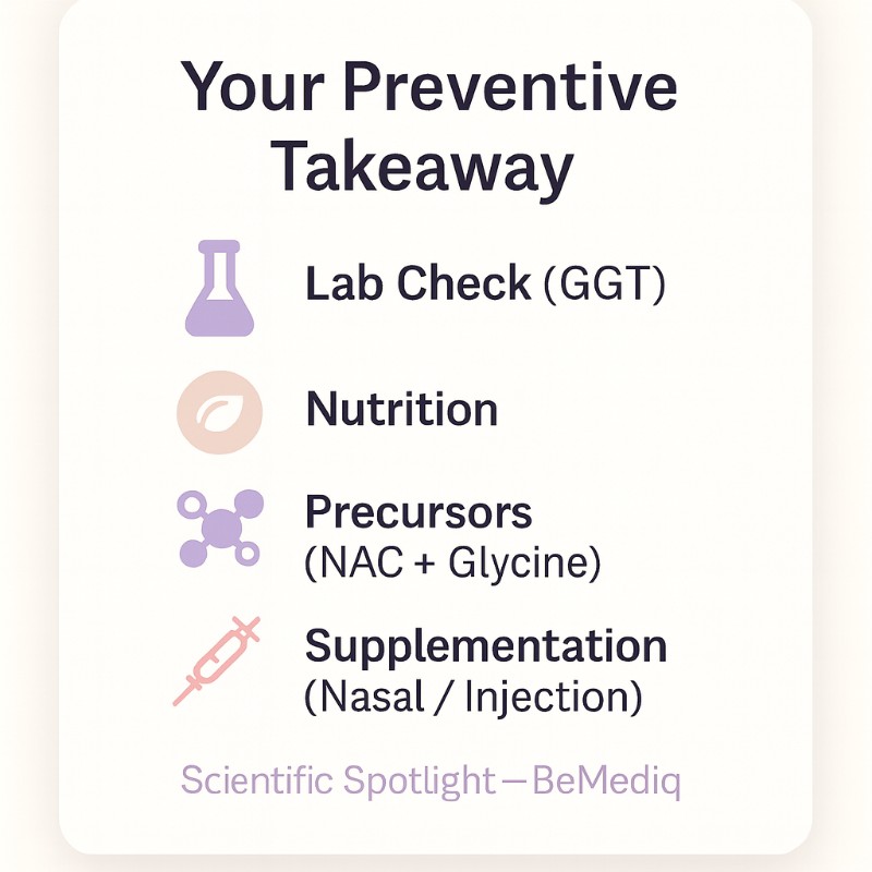 - Direct supplementation (advanced): Under medical supervision, nasal sprays or injections of glutathione are being explored as targeted options for those with higher oxidative stress or chronic illness.