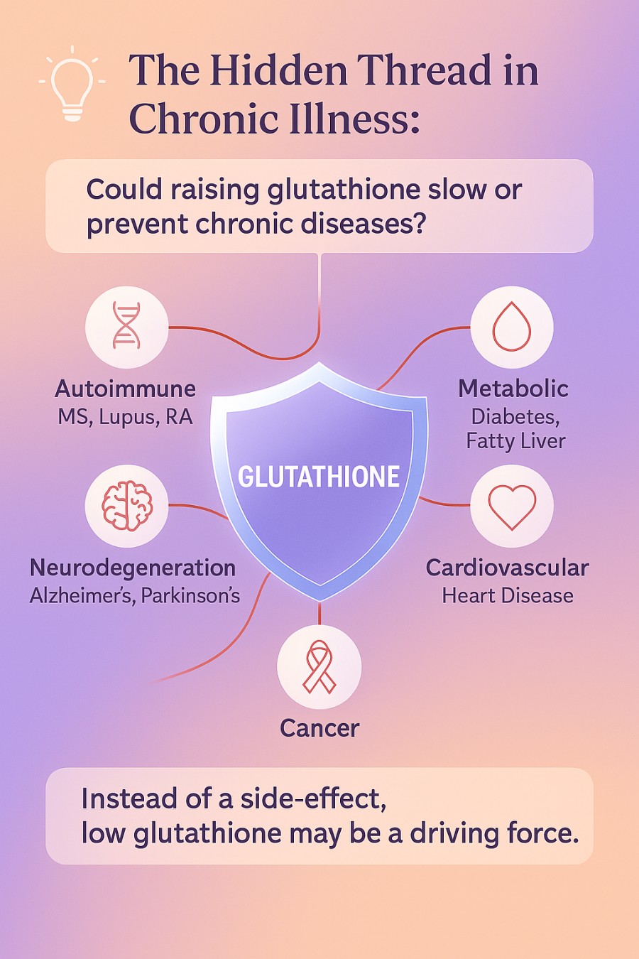 This paper stands out because the scientists recognized an important pattern: across diseases that seem unrelated — from diabetes to Alzheimer’s to lupus — the same weakness repeats itself: low glutathione. Instead of treating this as a side-effect, they dared to ask if it might be a driving force. And if so, could restoring it change the trajectory of chronic illness rather than simply managing symptoms?