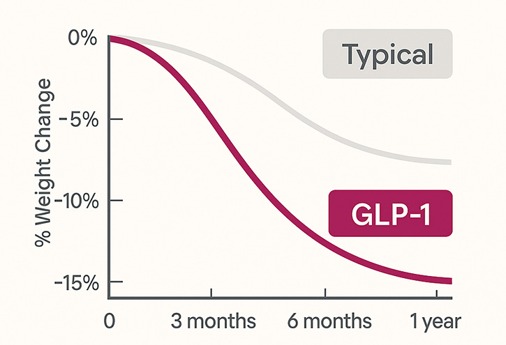 Average results based on clinical studies of GLP-1 medications. Individual results may vary.
